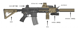 指示器:AN/PEQ-15的位置从护木右侧改至上方,连接鼠尾开关。